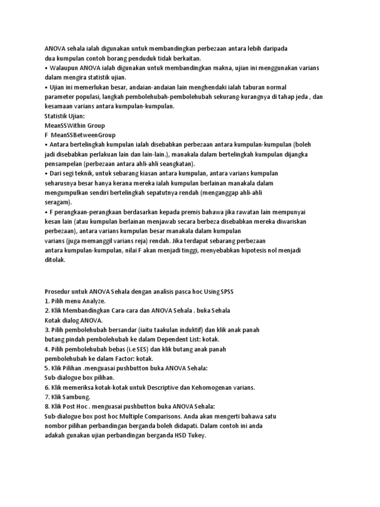 Prosedur untuk anova sehala dengan analisis pasca hoc using spss 1.